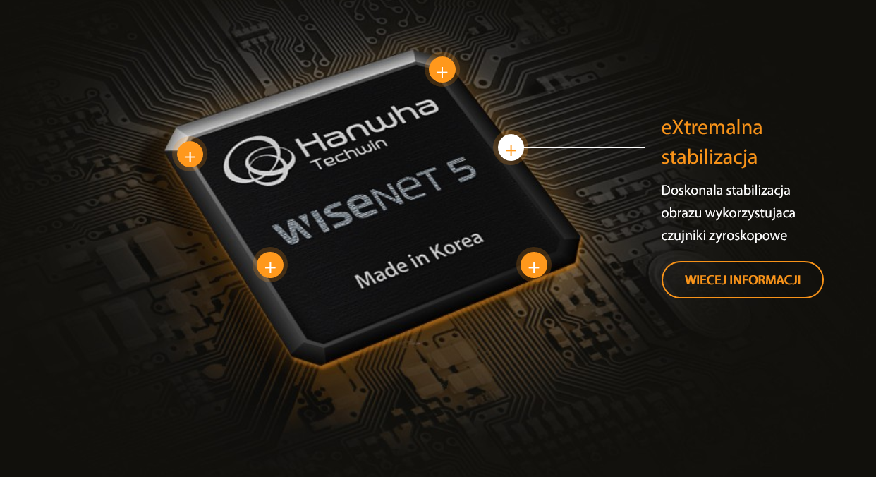 Seria kamer Wisenet X z innowacyjnym zestawem układów scalonych to nowa propozycja Hanwha Techwin. Cechy, którymi wyróżniały się dotychczasowe serie produktów Wisenet zostały udoskonalone. Urządzenia serii Wisenet X wyposażone są w 150dB WDR, gwarantują stabilizację obrazu dzięki zastosowaniu czujników gyro oraz oferują rejestrowanie niezwykle wyraźnych obrazów 24/7 z ulepszoną formułą zapisu przy niewielkim oświetleniu. Najnowsza generacja unikalnej technologii kompresji WiseStream II zapewnia odpowiednią skalę największej przepustowości łącza kamery.